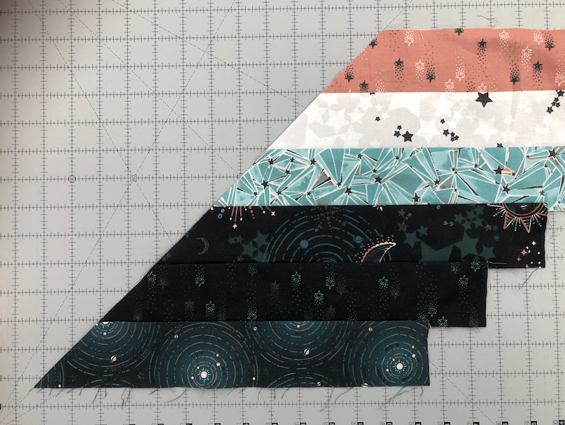 I also use Karla’s Straight Out of Line ruler to make the wedge blocks here. It’s a gentle angle and could be done without the ruler but I like the consistency of having a ruler – I’m much less likely to mess up my cuts.