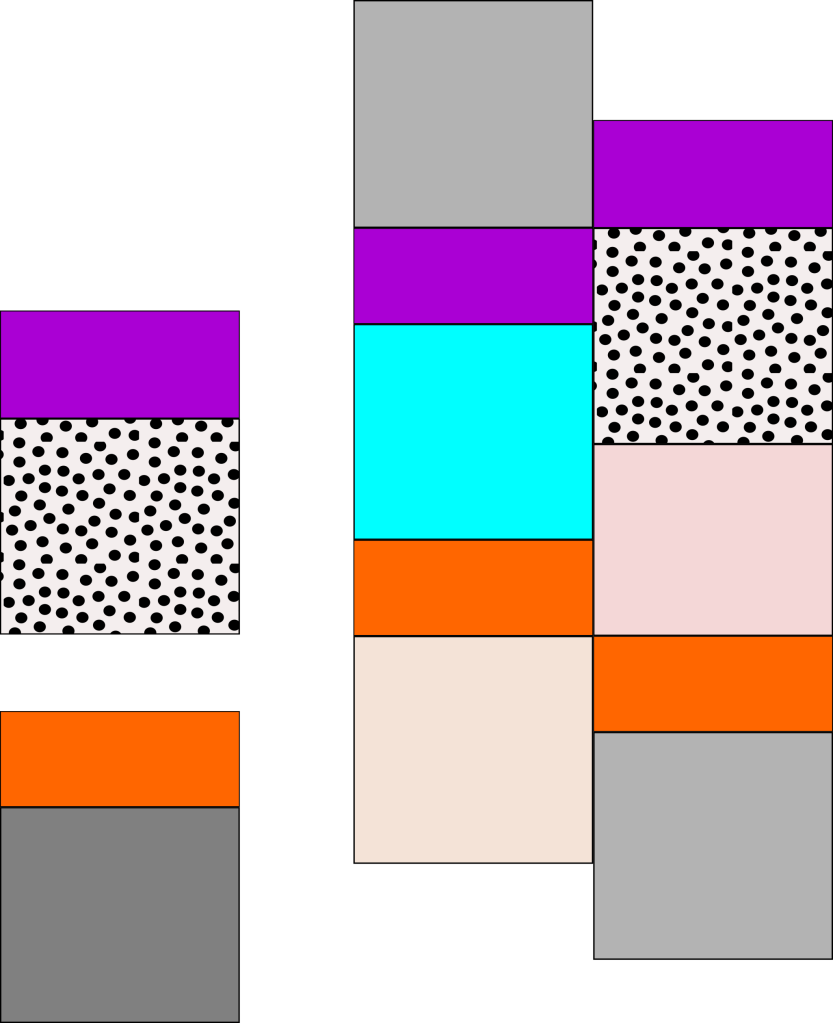 Sew your 2” square light/gray to your 2″ x 3″ dark rectangle to get a 4 ½” long piece to go between the mandibles. If your mandible blocks are shorter than 4 ½”, just trim this long piece to be the same length, taking a little off both ends as needed to get the right proportion.